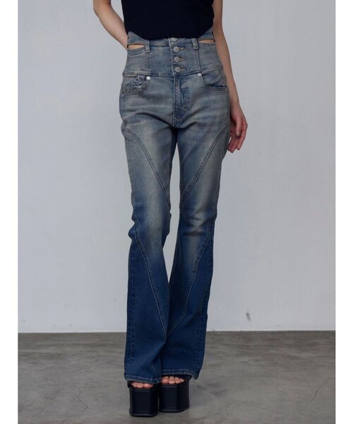 EMODA カットアウトハイウエストフレアパギンス エモダ EMODA アシンメトリーカットアウトハイウエストフレア