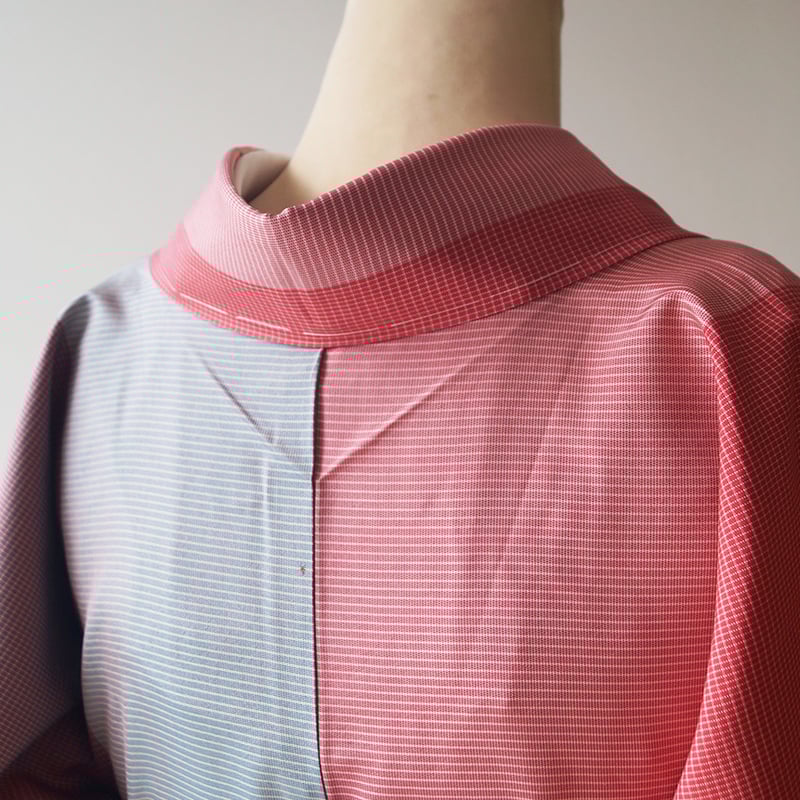 全品半額SALE★極美品★奄美大島紬★小紋袷★草花 袷】本場奄美大島紬 太縞 赤紅色×新橋色 ゆとりサイズ | 大山